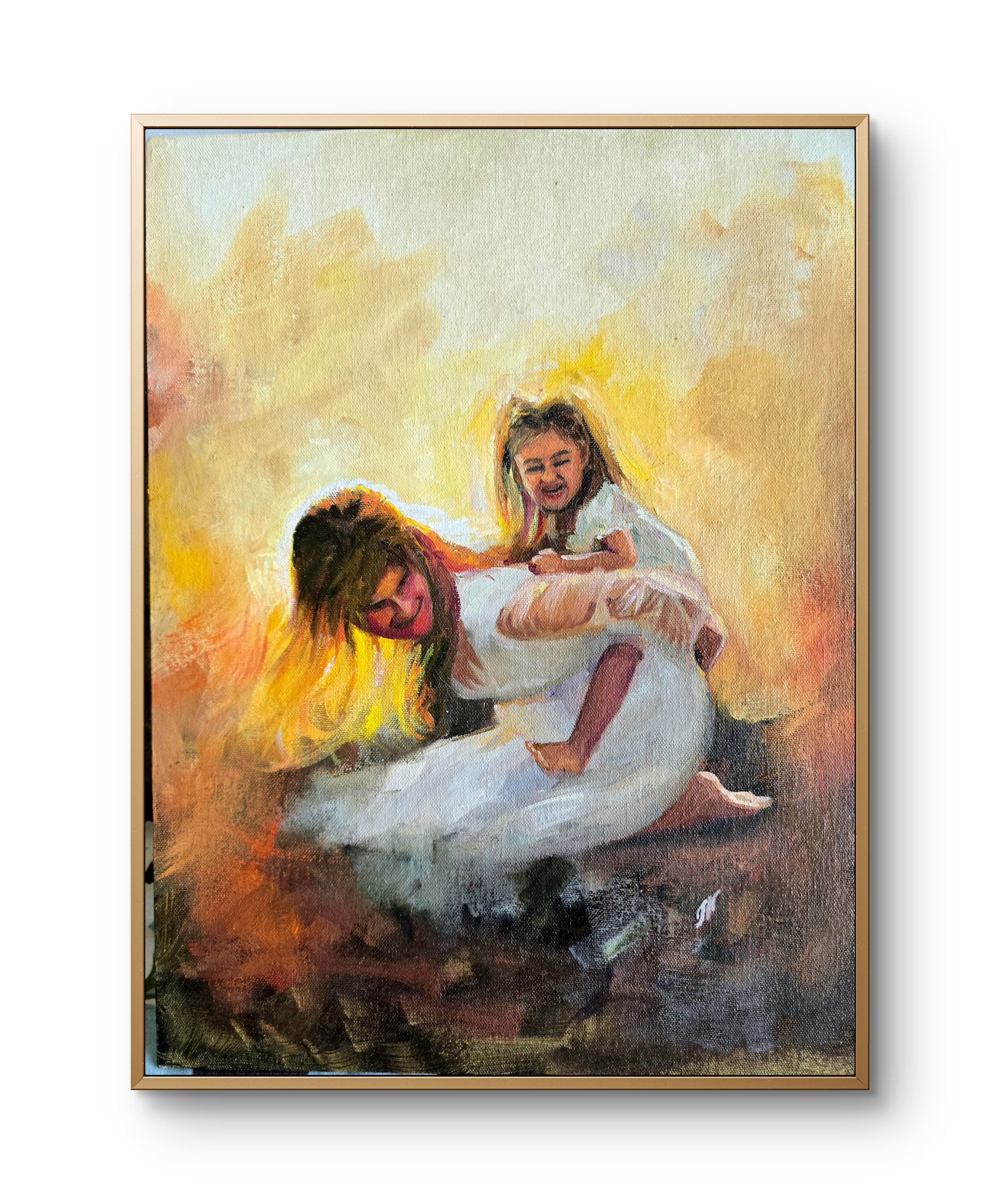 There is a kind of love that asks for nothing and gives everything. Held is that feeling. A mother’s arms become a world—safe, steady, and full of quiet reassurance. It’s the place we all return to, no matter how far life takes us. This piece isn’t just a painting—it’s a feeling you’ll recognize instantly. The kind that softens a room, and stays with you, every single day.